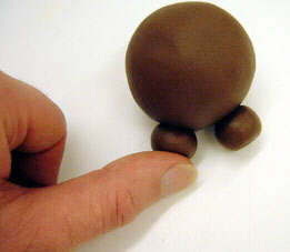 Dampen the two smaller balls with a little water and gently press them onto the base of the larger one.