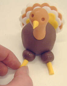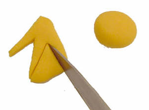 To make the feet start with the a small ball of yellow paste and give it a squash.