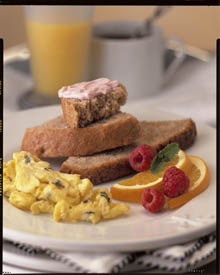 2-1 / 2 to 3 cups all-purpose flour In a large bowl, combine 1 cup all-purpose flour, whole wheat flour, granola, sugar, undissolved yeast, salt, and ground cinnamon. Heat water, milk, applesauce, and butter until very warm (120 to 130 F). Gradually add to dry ingredients. Beat 2 minutes at medium speed of electric mixer, scraping bowl occasionally. Stir in enough remaining flour to make a soft dough. Knead on lightly floured surface until smooth and elastic, about 8 to 10 minutes. Cover; let rest 10 minutes. Roll dough to 12 x 8-inch rectangle. Beginning at short end, roll up tightly as for jelly roll. Pinch seam and ends to seal. Place, seam side down, in greased 9 x 5-inch loaf pan. Cover; let rise in warm, draft-free place until doubled in size, about 45 minutes. Bake at 375 F for 30 minutes or until done. Remove from pan; cool on wire rack. Nutrition Information Per Serving: Serving size 1 slice ; 1 / 12 of recipe,