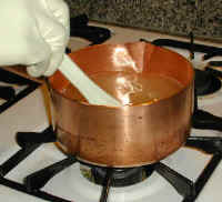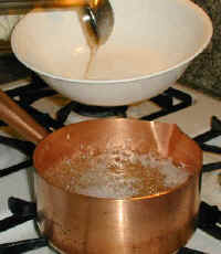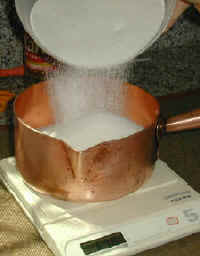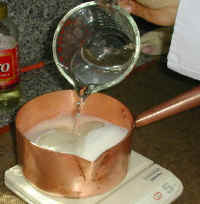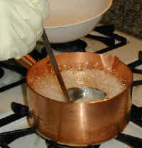 | Bring the sugar syrup to a boil and start scooping the foam from the sugar